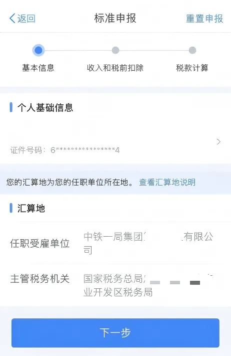 进入税款计算界面,确认结果后,点击【下一步】。