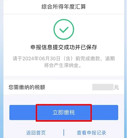 若存在应补税额但不符合免于申报,可点击【立即缴税】进入缴税。