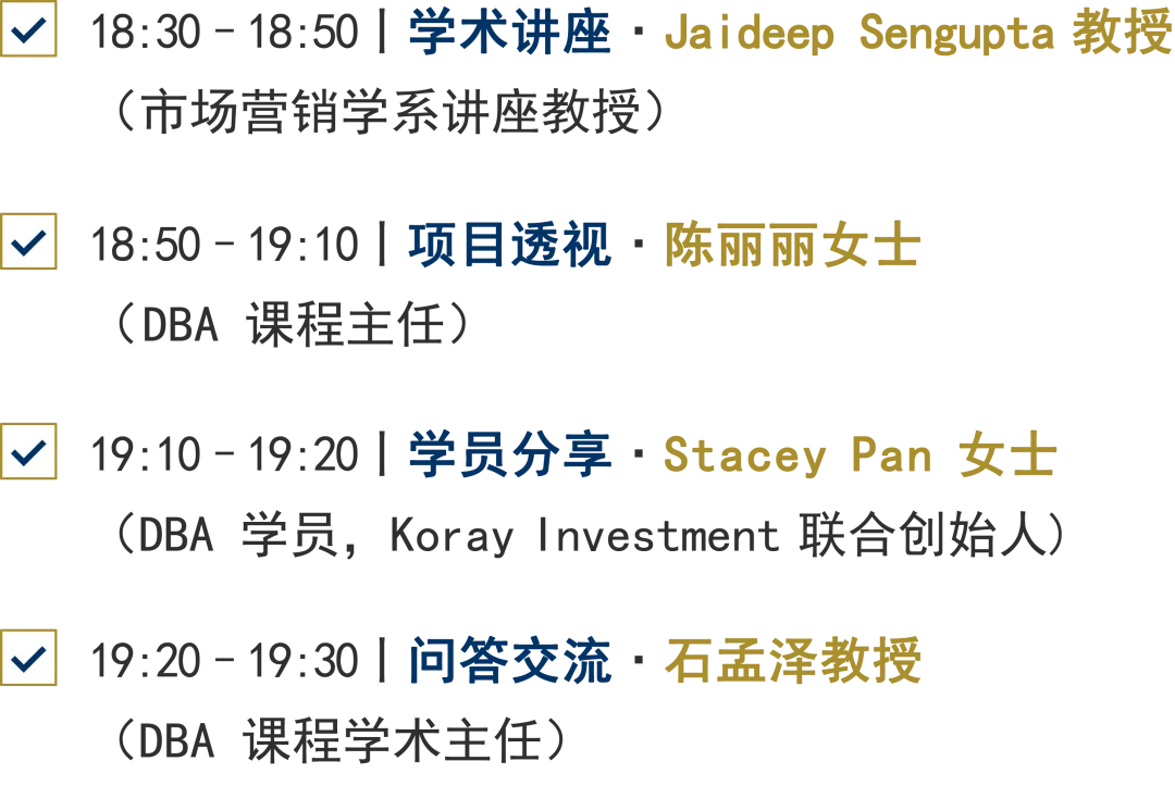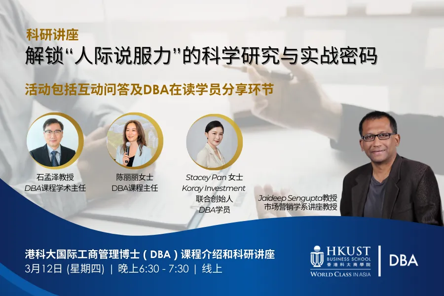 此外,您还将全面了解港科大英文DBA课程的独特价值,聆听课程管理者与在读学员的亲身分享,为您继续深造提供一手资讯。