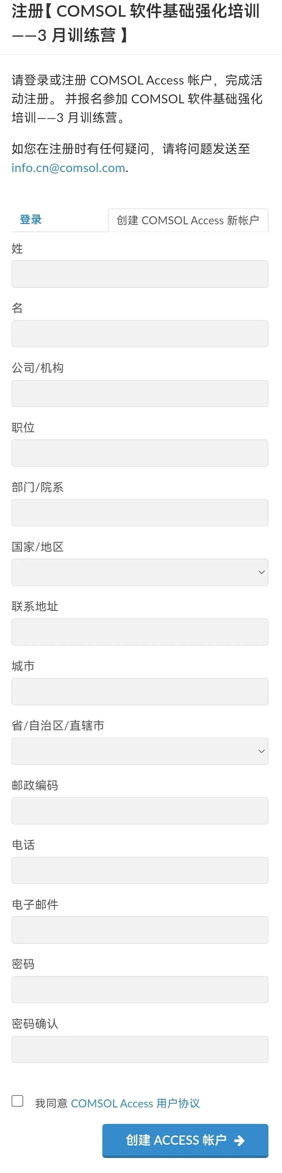 请登录或注册 COMSOL Access 帐户,报名参加COMSOL 软件基础强化培训——3月训练营。
