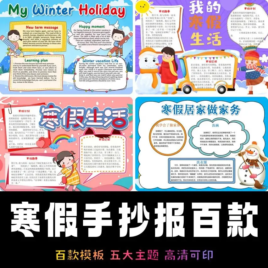 这套合集收录了100款精心设计的寒假手抄报模板,从生活记录到学习计划,从安全教育到节日主题,各种风格应有尽有。每一款都经过精心设计,色彩搭配和谐,版面布局合理,让孩子在完成作业的同时也能感受到创作的乐趣。