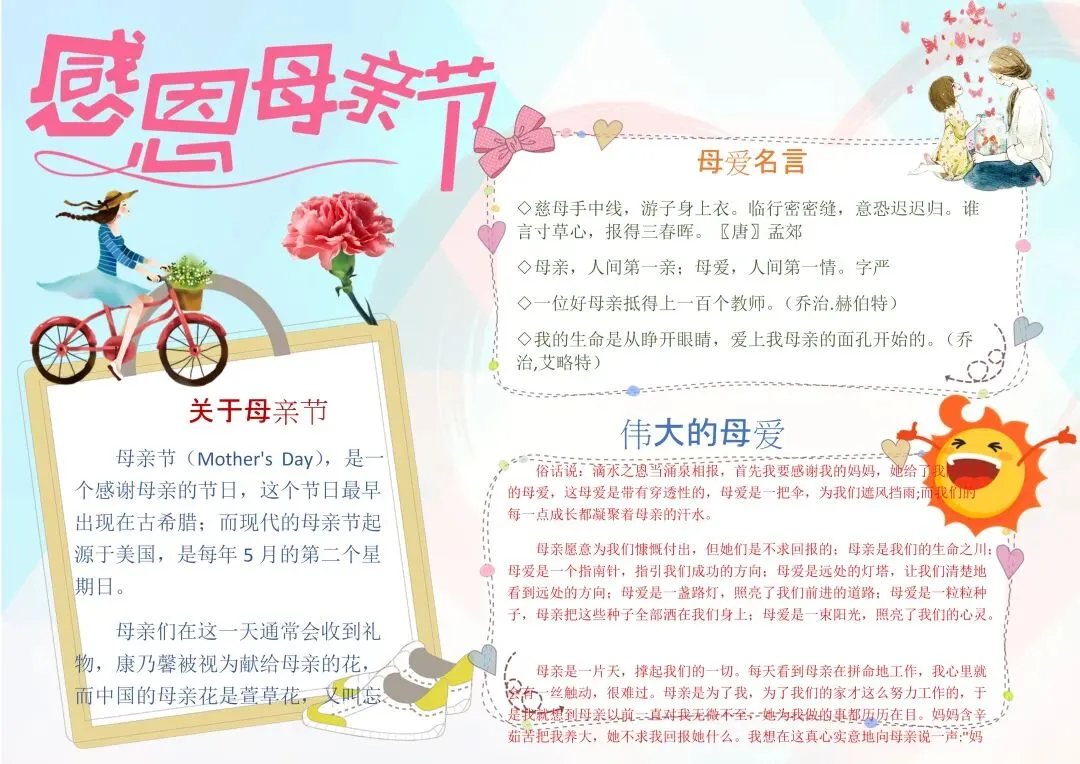 母亲节手抄报大全(含线稿)可编辑打印保存下载