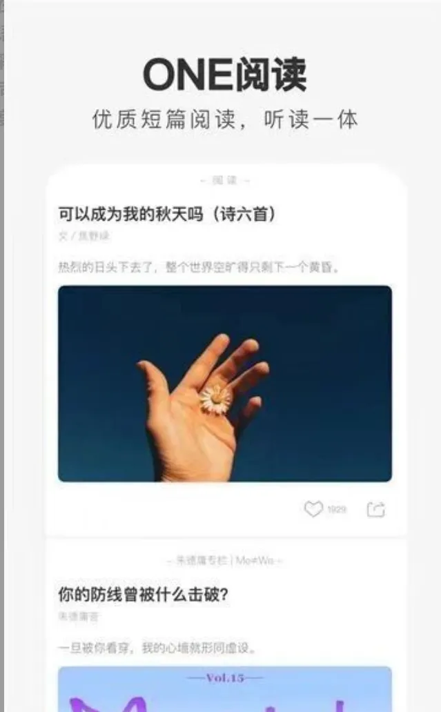 :是一款新闻阅读类软件,秉持 “复杂的世界里,一个就够了” 的理念,每天为用户精选一篇文字、一张图画、一个问题、一个东西等内容,还设有深夜电台,为用户提供安静的阅读空间和丰富的视听体验。