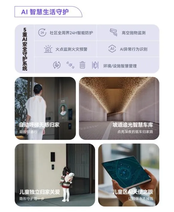 24小时AI安全守护:通过“天使之眼”系统,家长可授权查看孩子在儿童活动区的实时动态;高空抛物监测、周界防护等功能,构筑全天候安全网。