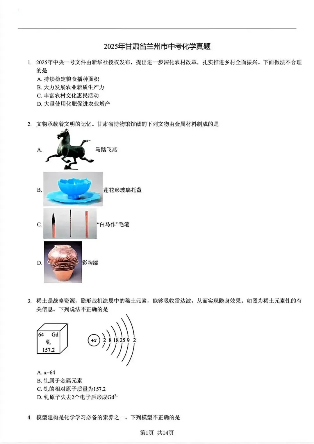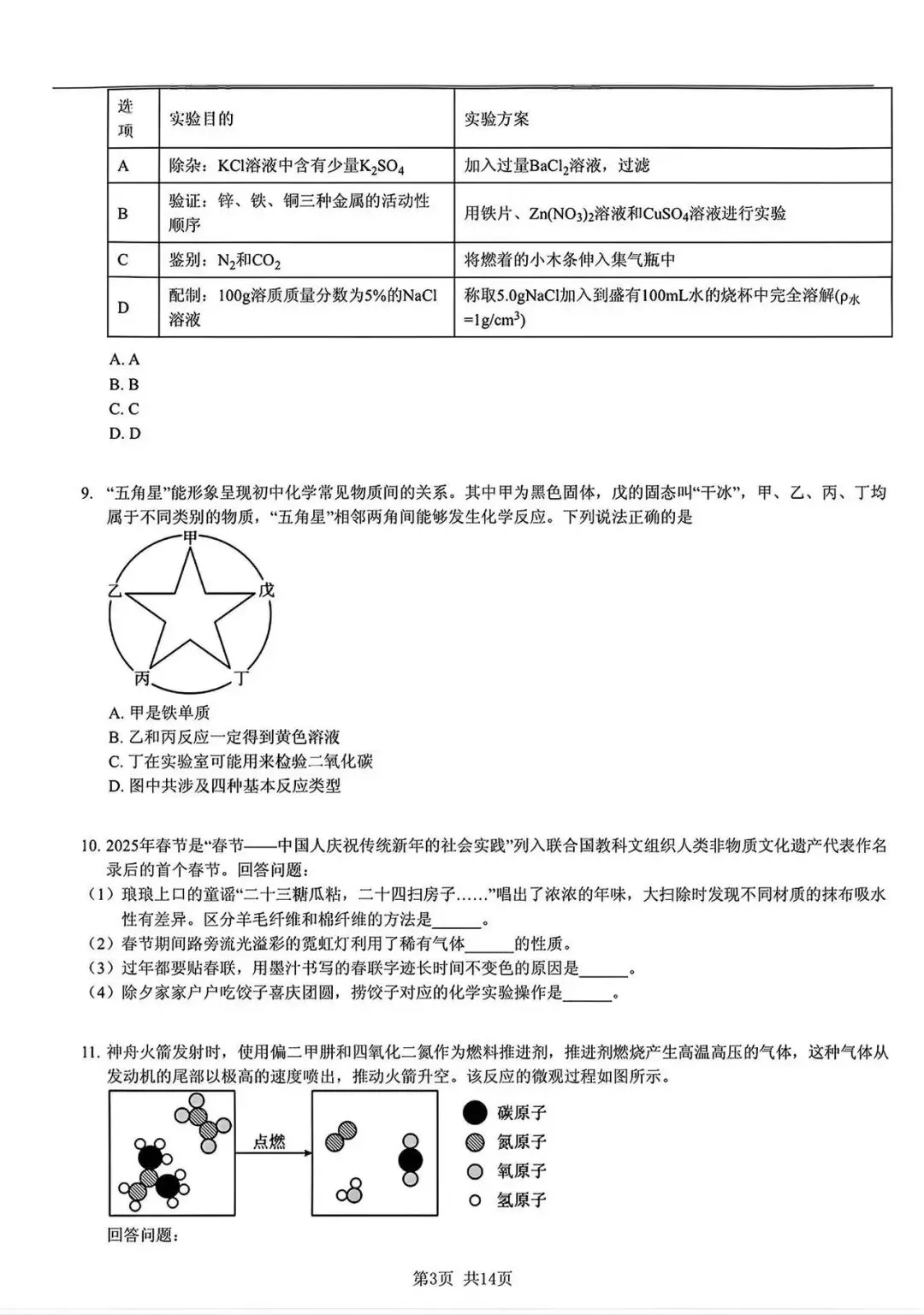 初三 | 中考【化学】试卷 电子版+答案