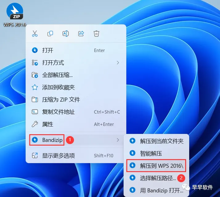 1、下载WPS 2016软件安装包到电脑上,右键选择【解压到WPS 2016\】