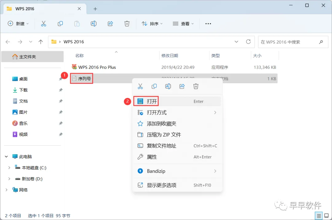 11、回到WPS 2016文件夹,找到【序列号】文档,右键【打开】它