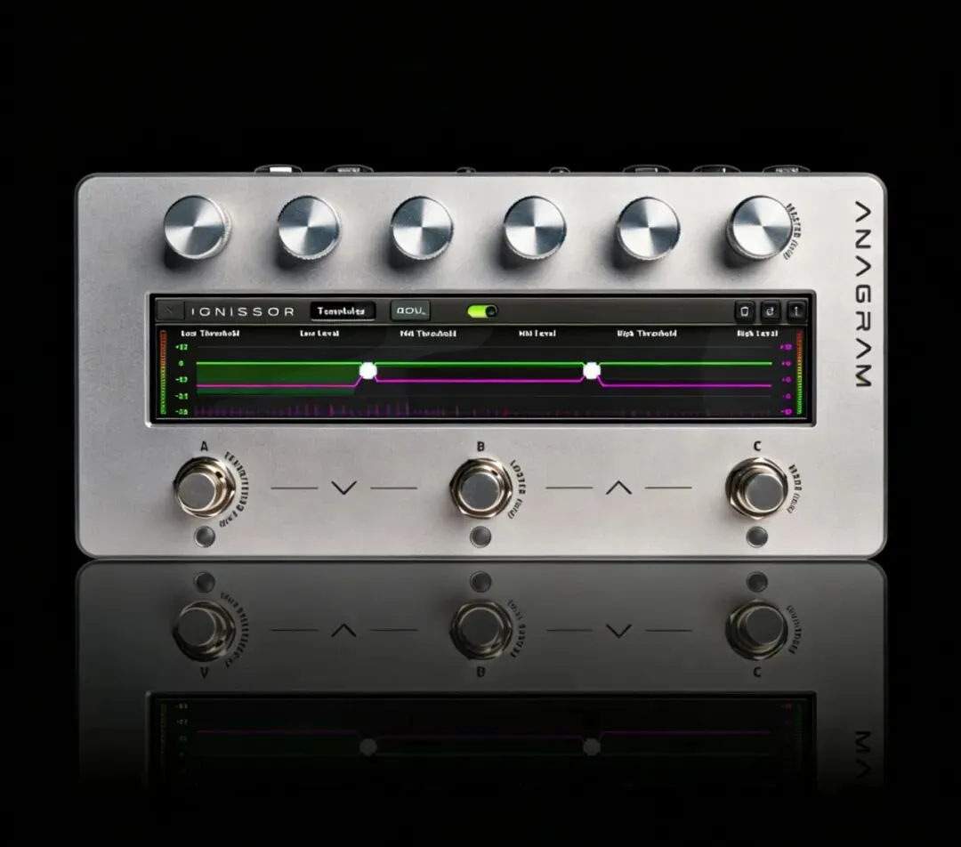 经过无数小时的细致调试与更多反馈收集,Darkglass 非常自豪地为您带来 Ignisso,一款适用于 Anagram 效果器平台的多段压缩插件。它可让您对低、中、高三个可自定义频段的响应进行塑形,让您对音色实现精准且全面的掌控。
