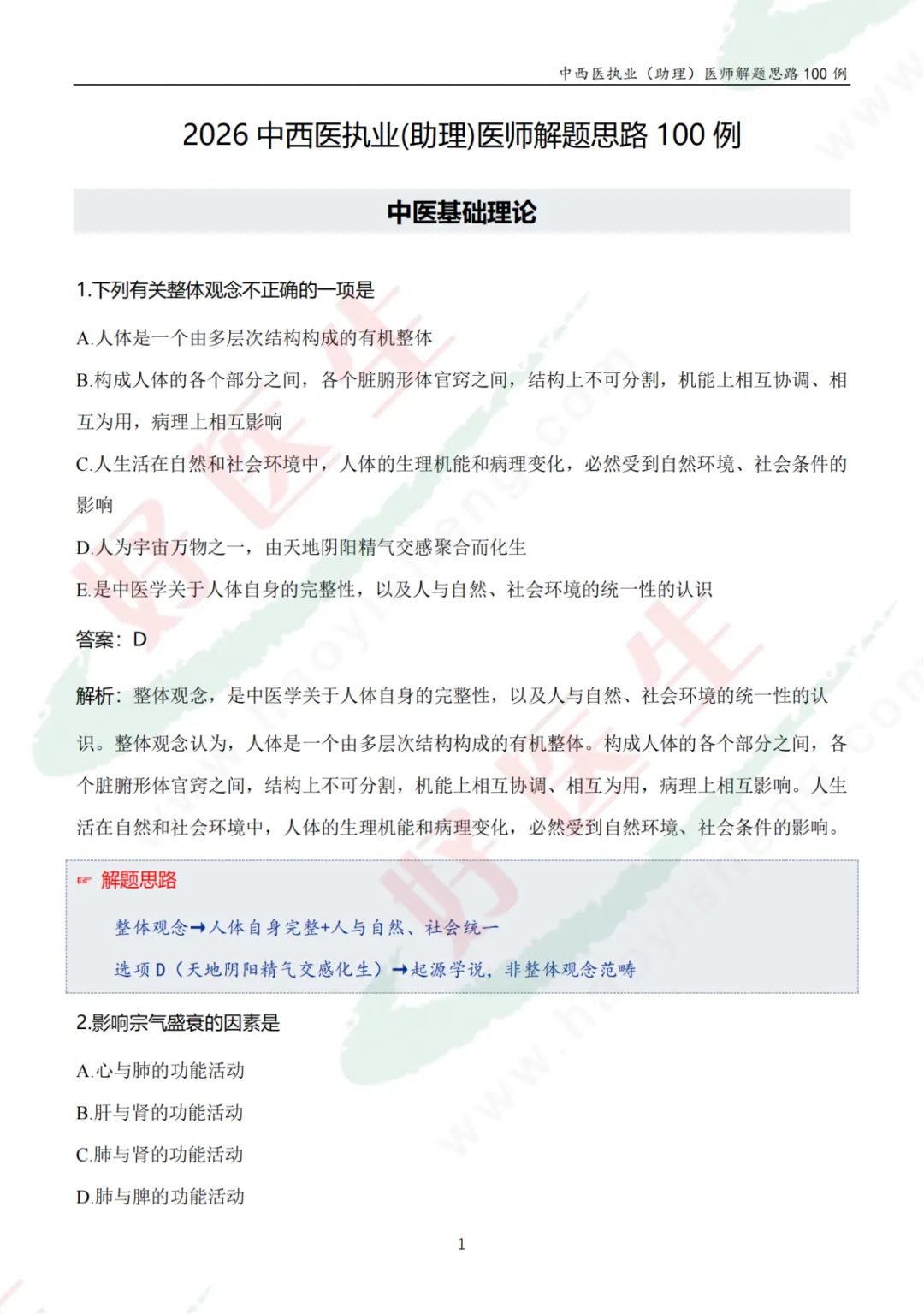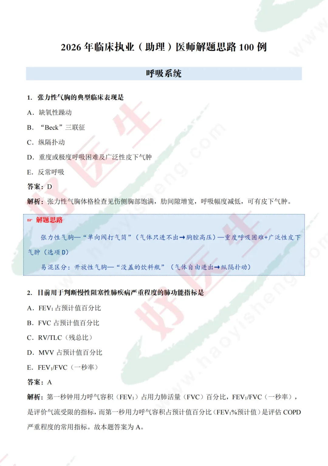 为助力医护高效备考,专属解题干货——《2026医师资格考试解题思路100例》免费发放!
