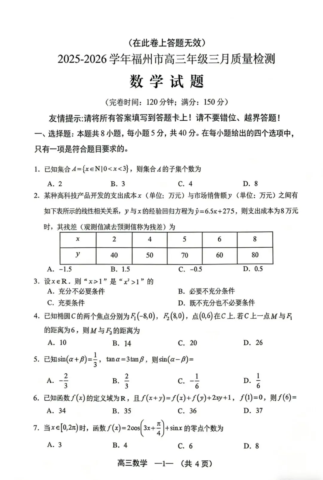 本站文章均为手工撰写未经允许谢绝转载:夜雨聆风 » 2026福州二检高考数学试卷+答案解析(可打印)