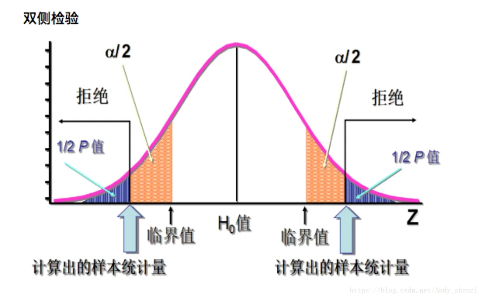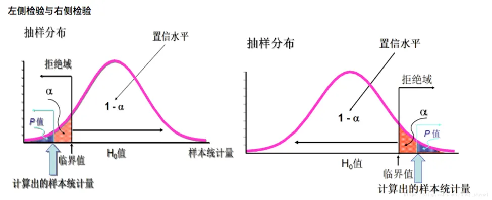 检验统计量(test statistic):用于假设检验计算的统计量。例如:Z值、t值、F值、卡方值。