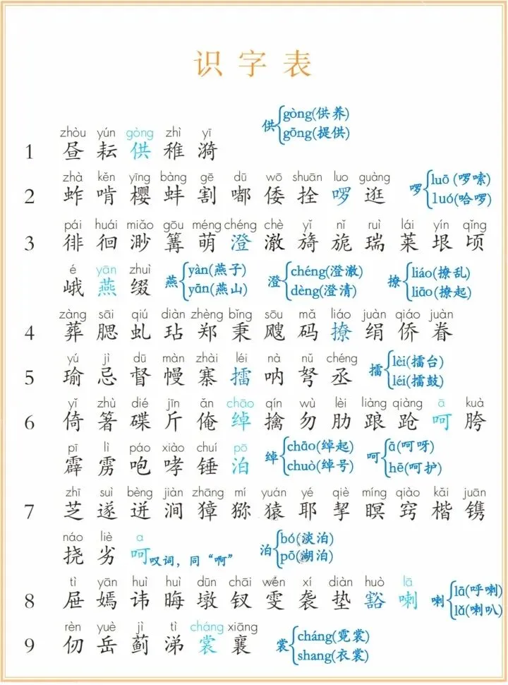 帮助孩子掌握会认的字、会写的字、必背词语,巩固基础知识。