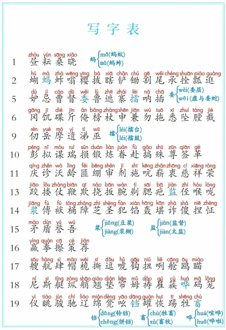 2025—2026学年春季部编版语文五年级下册《课后字词三表解析》,电子版可打印