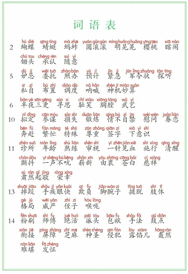 【五下语文】2026年春季部编版语文五年级下册《课后字词三表》,可打印