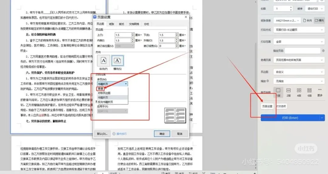90%的人遇到“不能纵向打印”,都是因为 页面设置里的「多页」选项,不小心选了「书籍折页」 !
