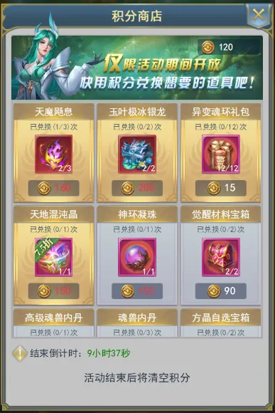 每次寻宝可获得积分,积分可在积分商店内兑换道具。活动结束时,积分清零。
