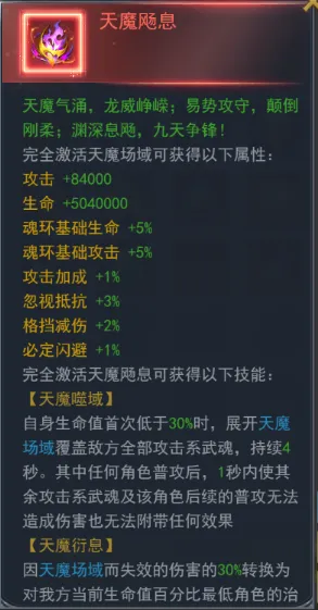 【天魔飏息】使用后可激活天魔场域。