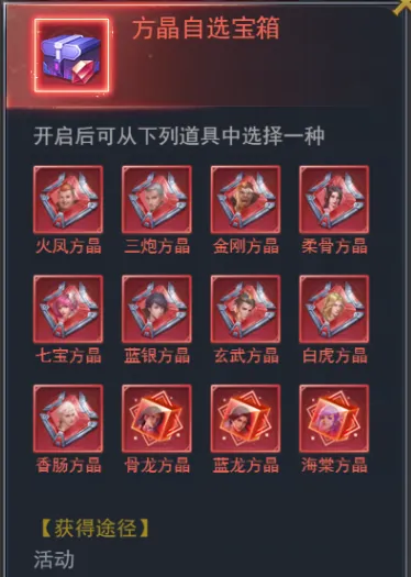 【方晶自选宝箱】自选红色方晶,提升大量实力(开启神星后才可兑换)