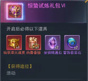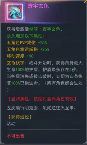 活动期间,可进行惊蛰至宝、惊蛰秘宝购买。寰宇玄龟坐骑限时返场。