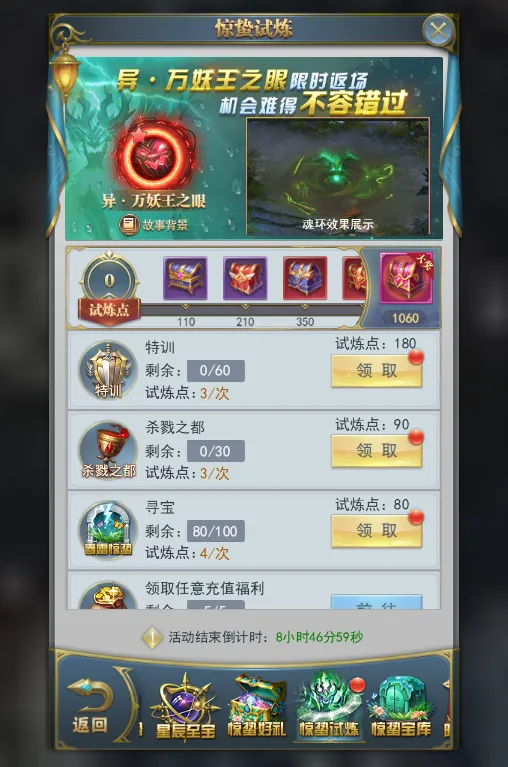 活动期间,完成游戏内副本或者日常任务,可获得试炼点。