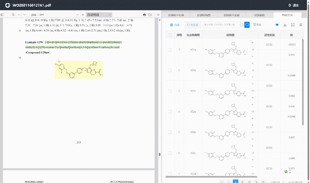 鹰谷新品工具软件——InPaper文献结构化系统,基于AI研发的专利/论文数据挖掘工具,能自动提取PDF专利或论文数据,获得结构式、反应式和活性数据,可用于AI训练,帮助企业建立自己的文献数据库,实现全文搜索、结构式和反应式搜索。