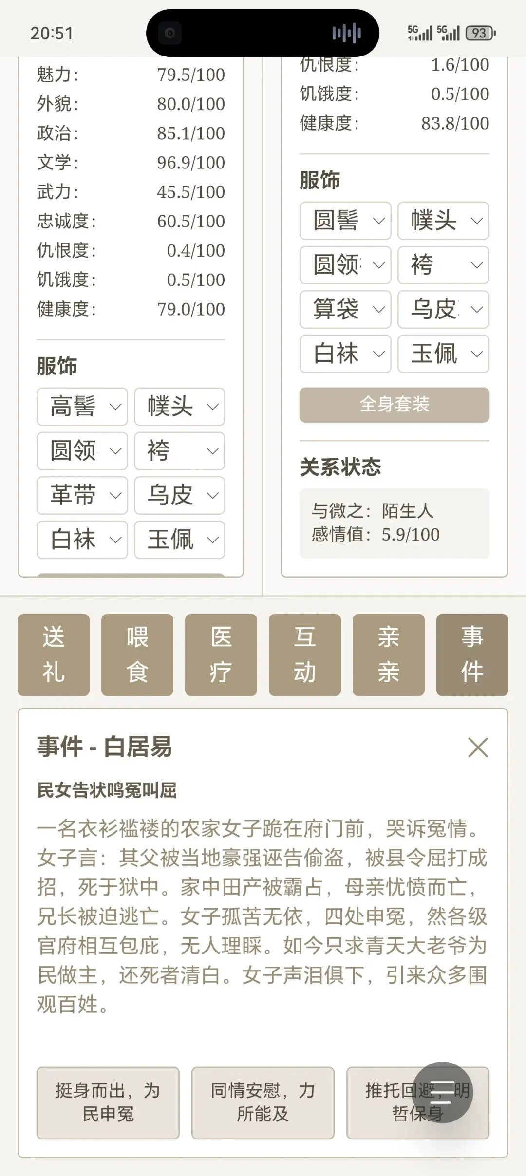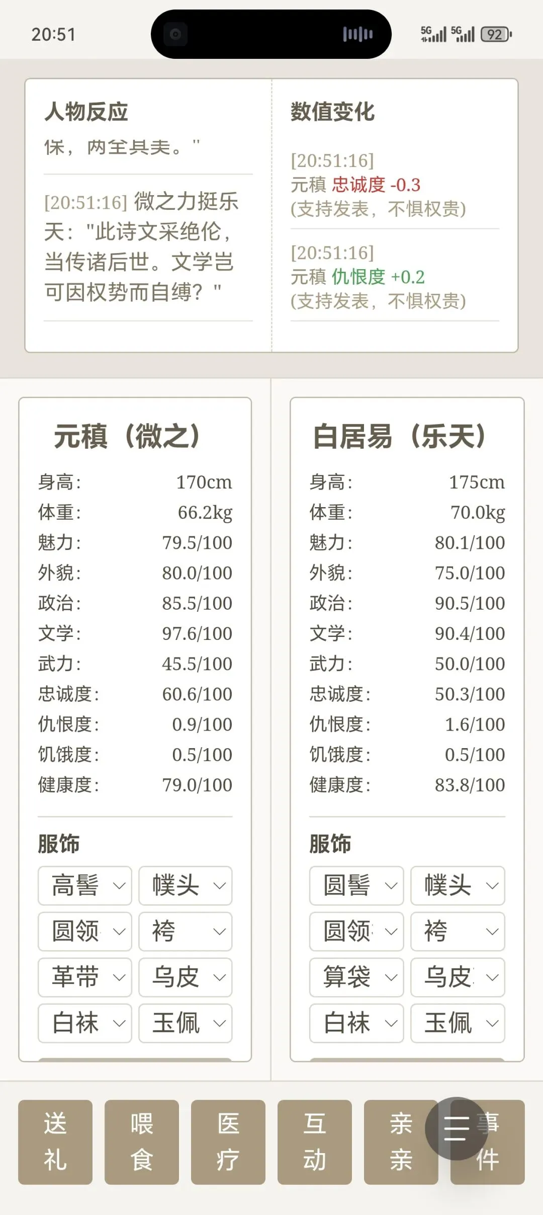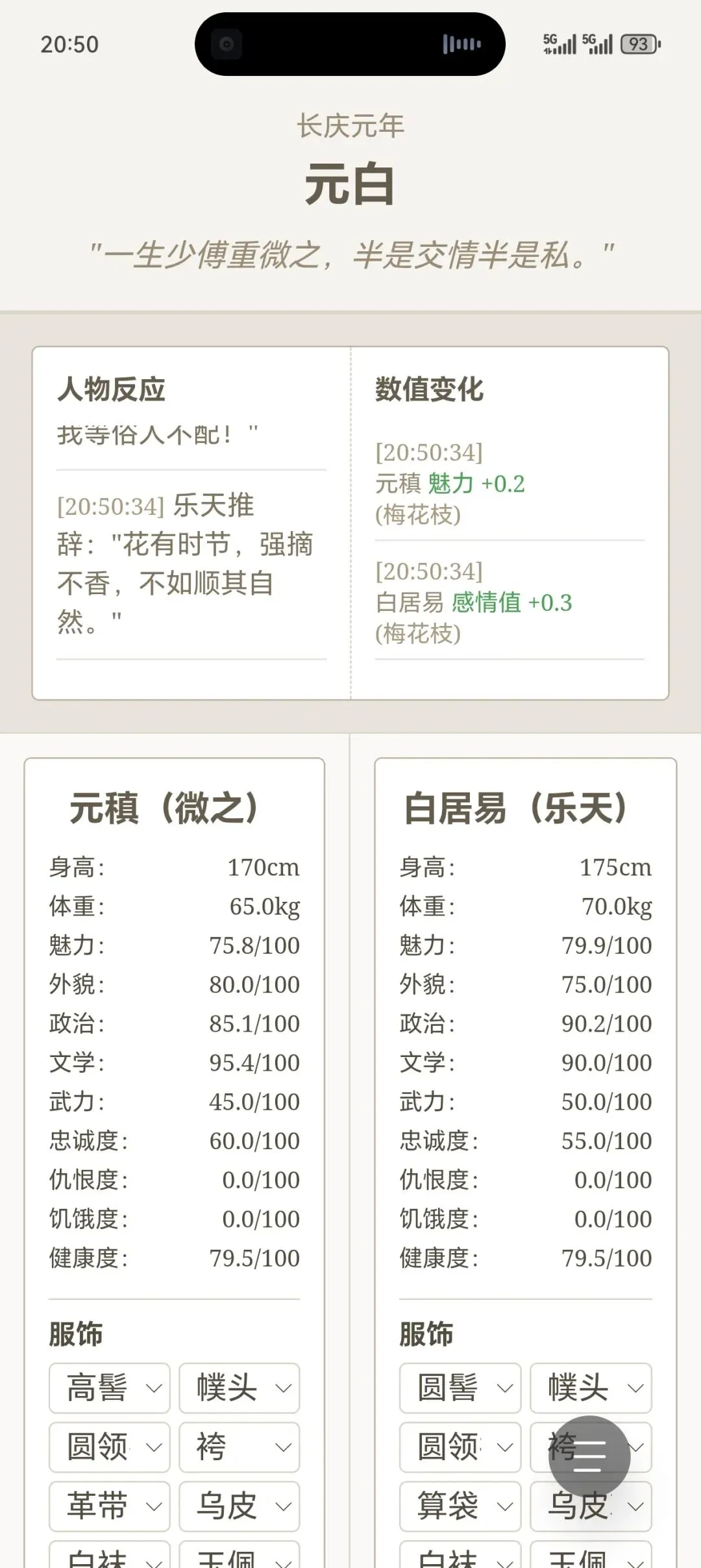筹备许久,我开发的“元白互动文游App”终于和大家见面了。基于《旧唐书》、《旧唐书》、《资治通鉴》、两人文集中对两人同科及第、患难与共的真实记载,我试图在代码中复刻那段“始终无间”的岁月。