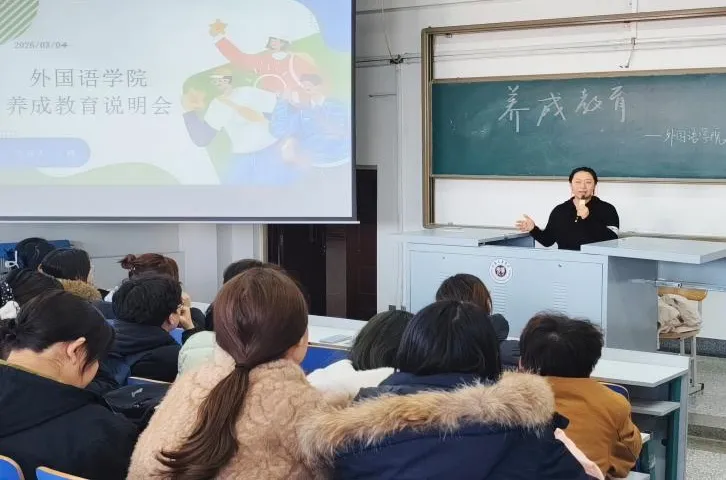 2026年3月4日,外国语学院养成教育社团召开2025-2026学年第二学期养成教育启动说明会。会议由社团负责人、辅导员王越老师主持,大一至大四年级学生代表及社团骨干成员参加。王越老师围绕“养成教育是什么、为什么参加、怎么参与”三个核心问题,系统解读了养成教育与第二课堂学分、劳动教育实践学分的关联机制。养成教育通过“2+X”集体习惯养成与“年级分层”个人自选相结合的模式,将文明、诚信、劳动等23项好习惯融入日常,是学生综合素质评价的重要组成部分。
