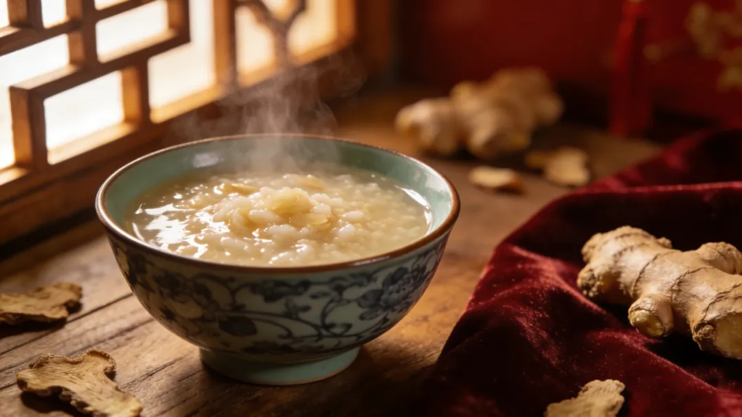 做法:先将干姜、高良姜煎汁,加入粳米煮粥,出锅前调入红糖即可。
