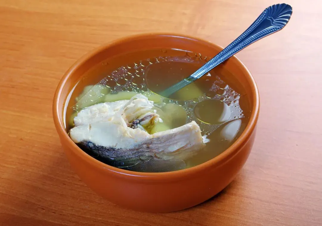 做法:鱼煎至微黄,加水、淮山、芡实、姜片,大火煮沸后转小火煲1小时,加盐调味。