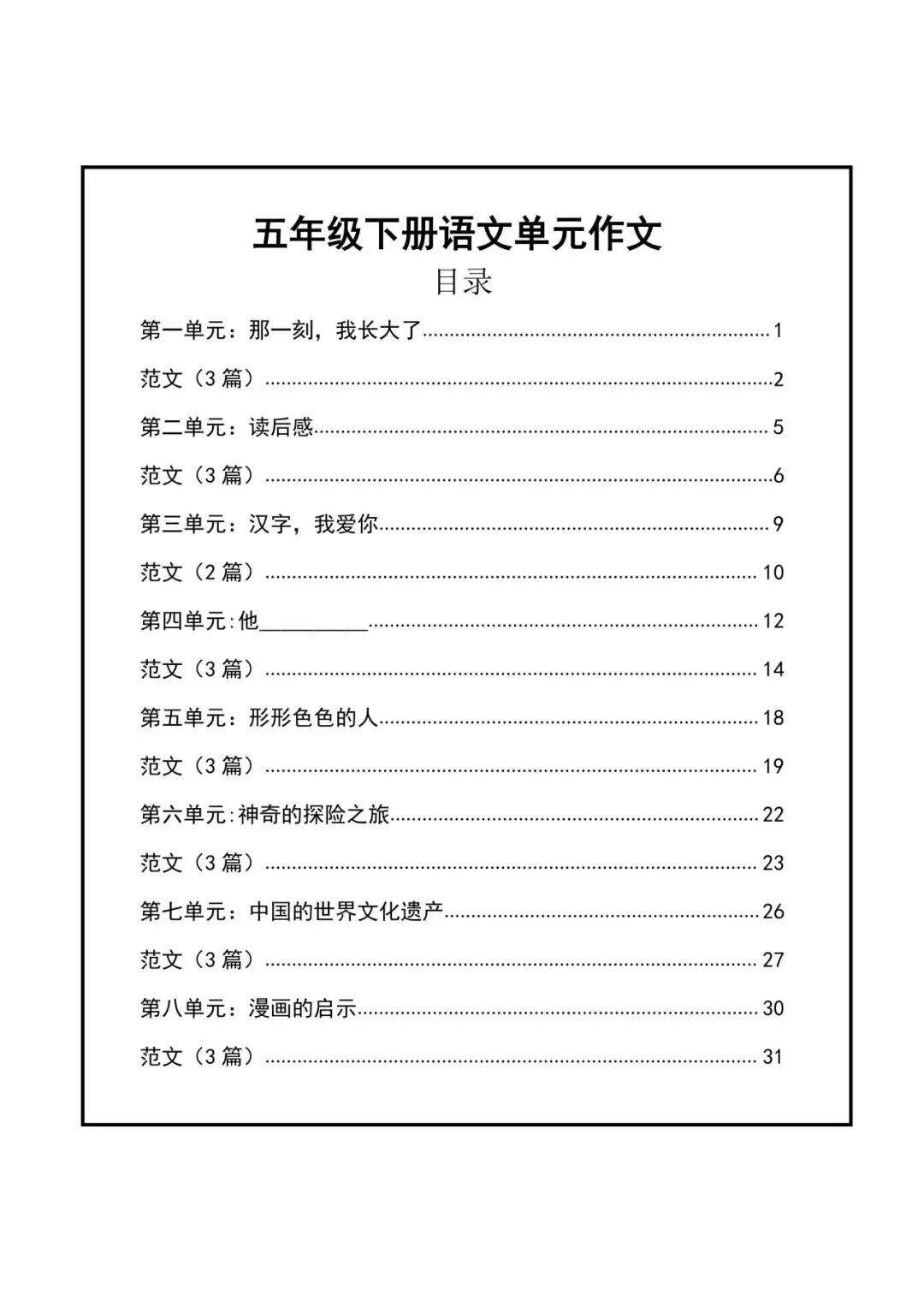 获取全部《五下-单元作文+例文范文》完整电子版: