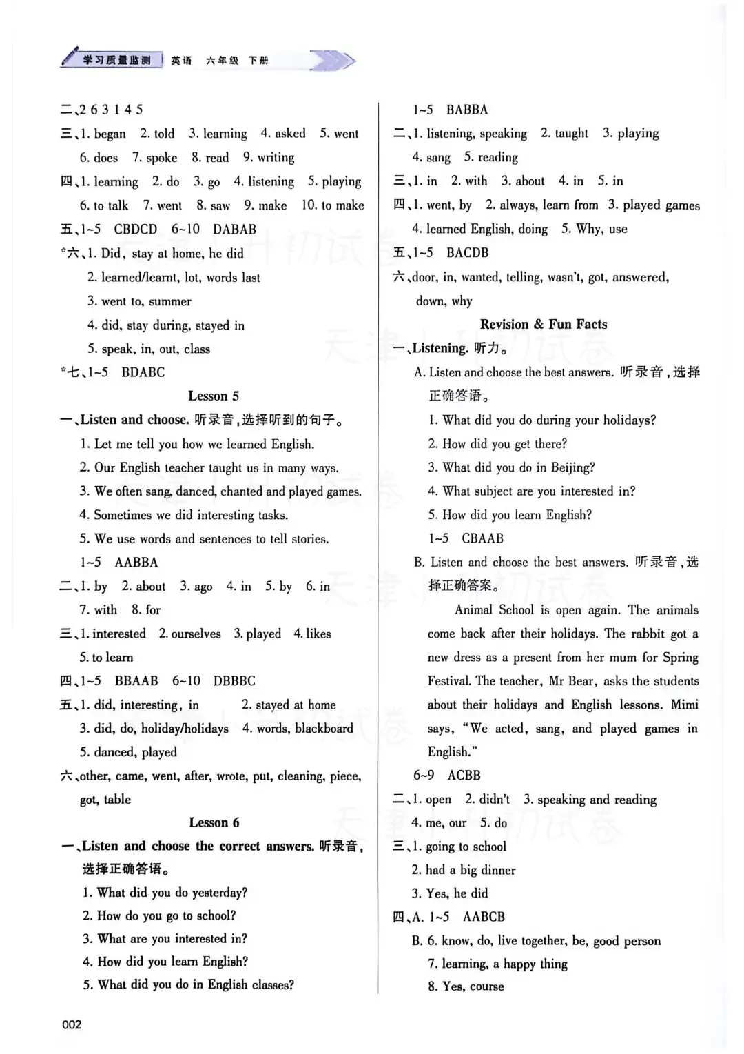 26春学习质量监测参考答案天津人教精通版英语六年级下册(电子版可下载打印)