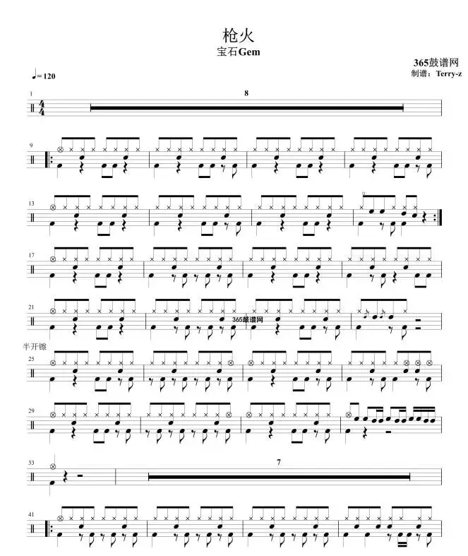 原创鼓谱 枪火 鼓谱 架子鼓 高清鼓谱PDF