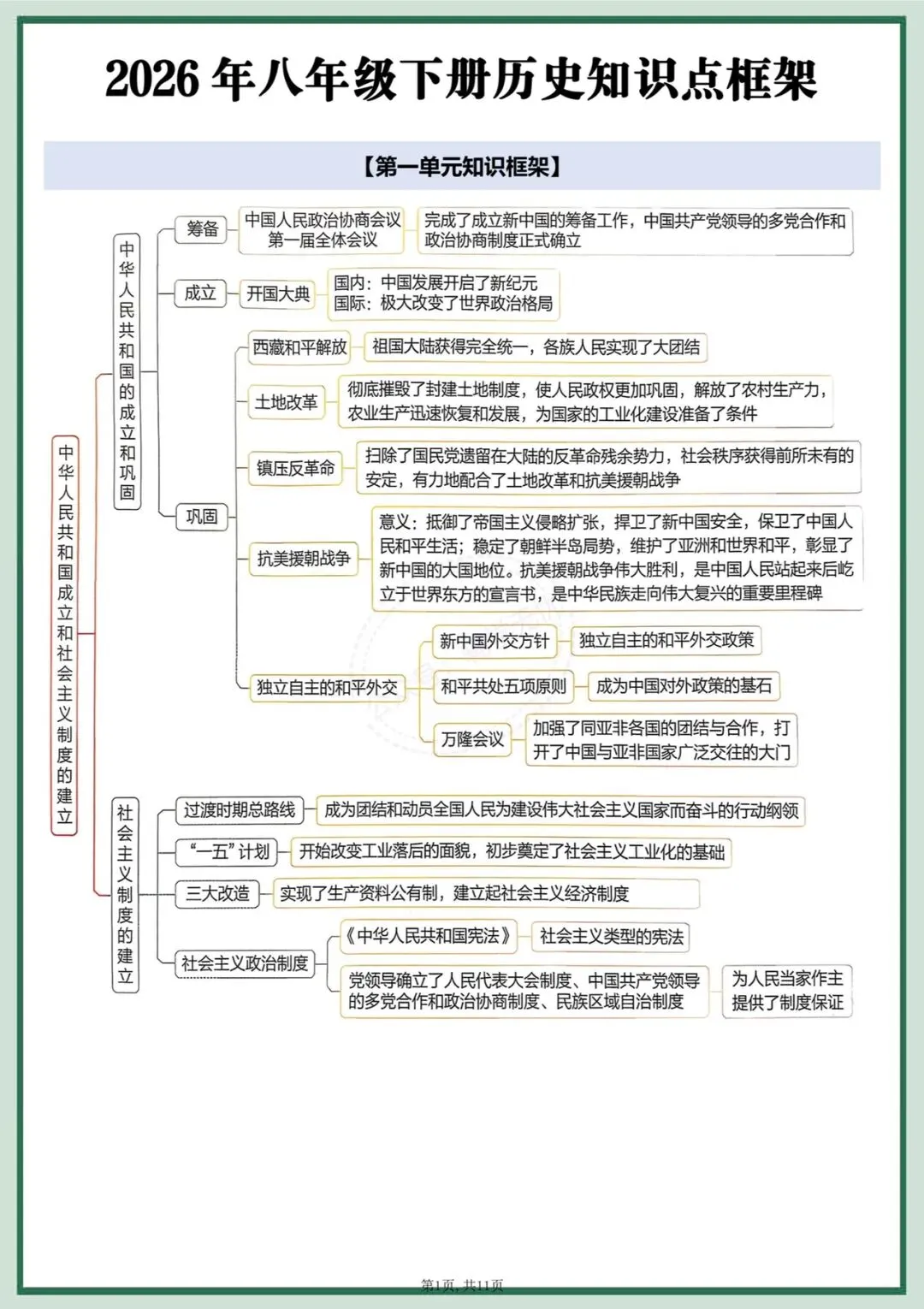 2026年春期最新版八年级下册历史知识点框架+单元知识点拓展,提分必备!开卷必备!完整电子版可打印!