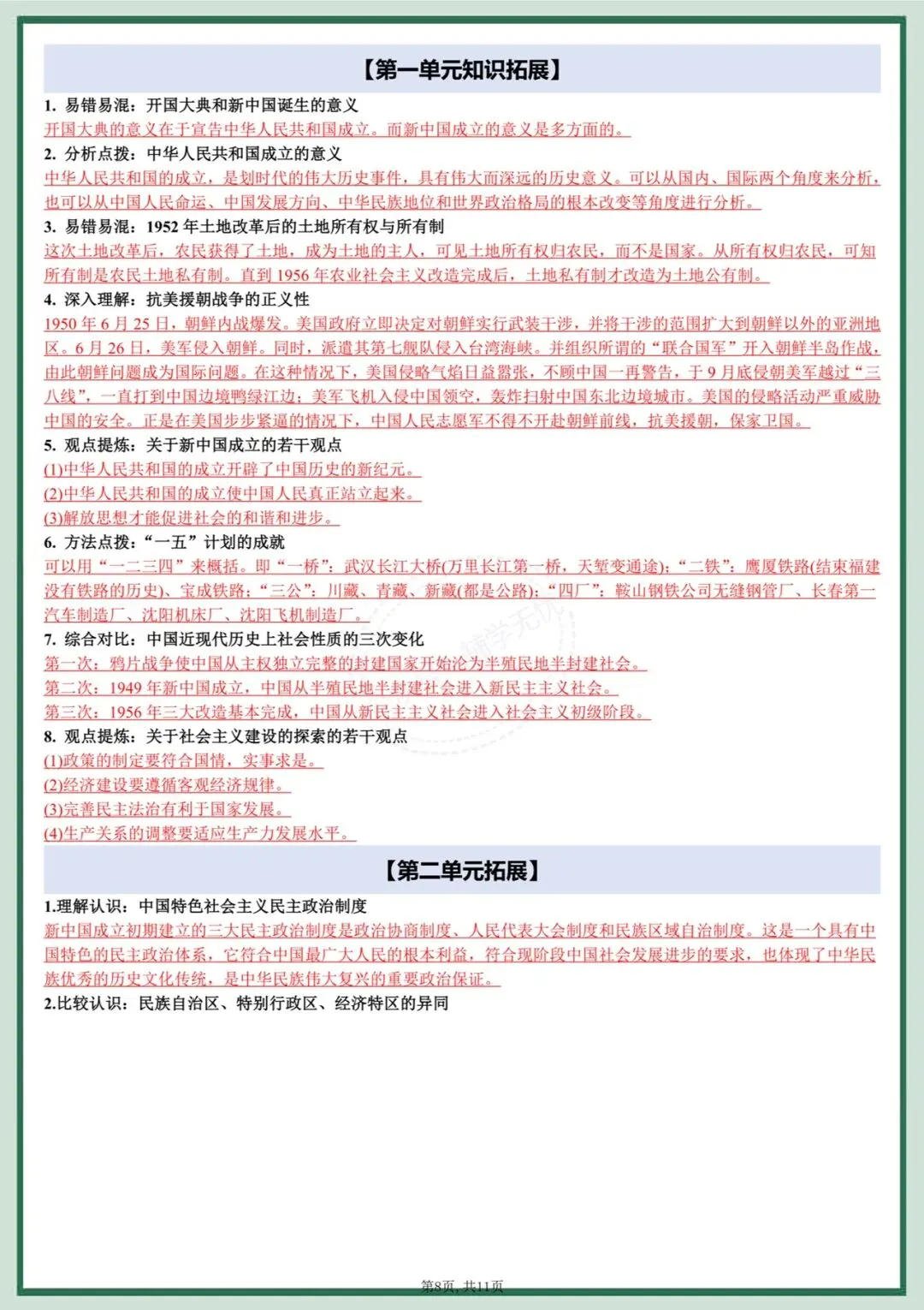 八下历史|2026年春期最新版八年级下册历史知识点框架+单元知识点拓展,提分必备!开卷必备!完整可打印!