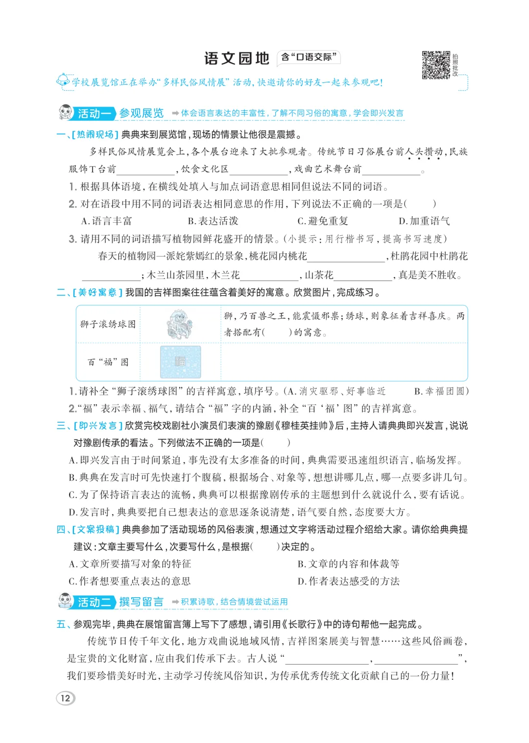 今日分享2026春人教版语文1-6年级下册《基础知识一课一练》六年级下册最新版pdf电子版高清可打印下载