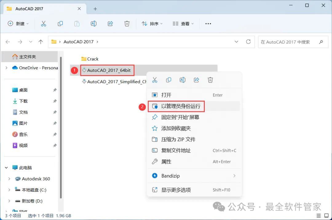 1、下载AutoCAD 2017软件安装包到电脑上,右键选择【解压到AutoCAD 2017\】