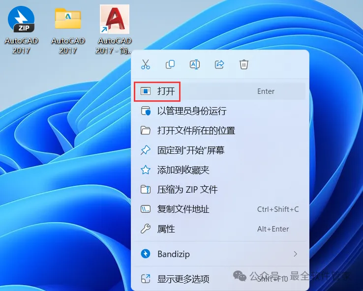 10、回到桌面,右键桌面上的【AutoCAD 2017软件图标】,点击【打开】