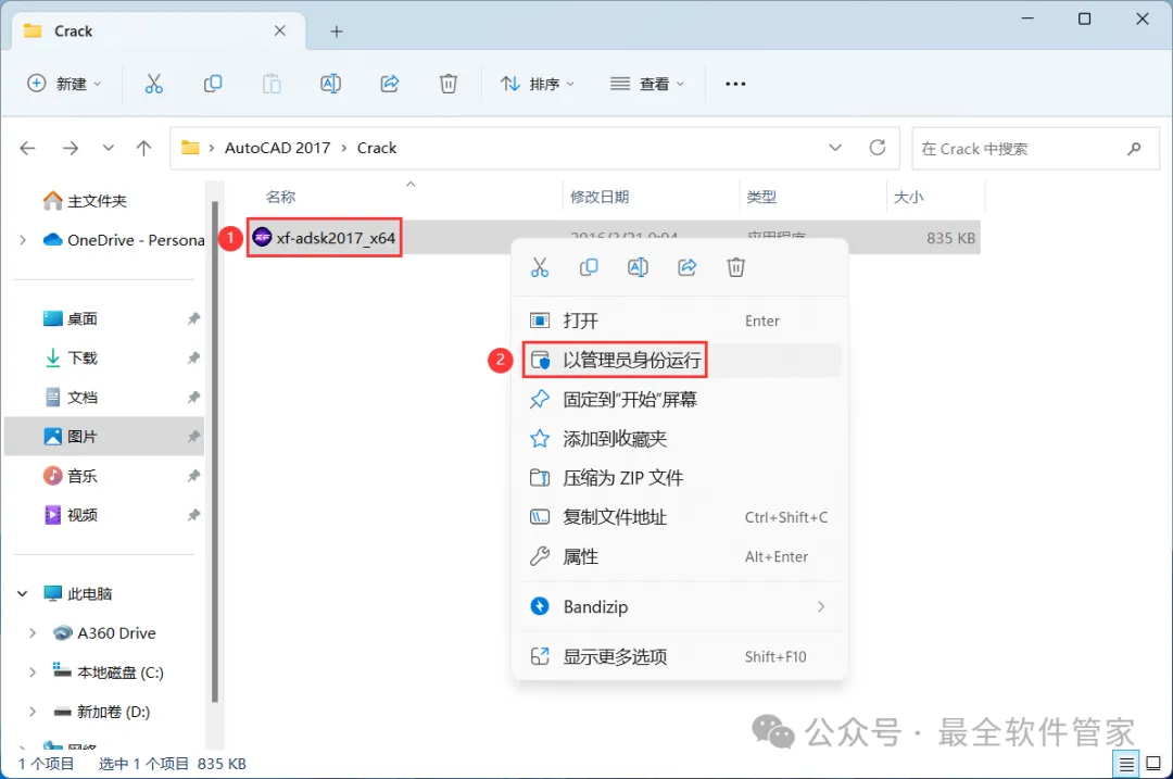 22、回到AutoCAD 2017文件夹,找到【Crack】文件夹,右键【打开】它