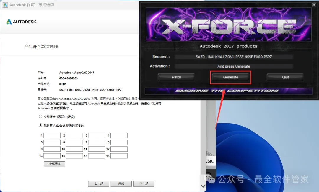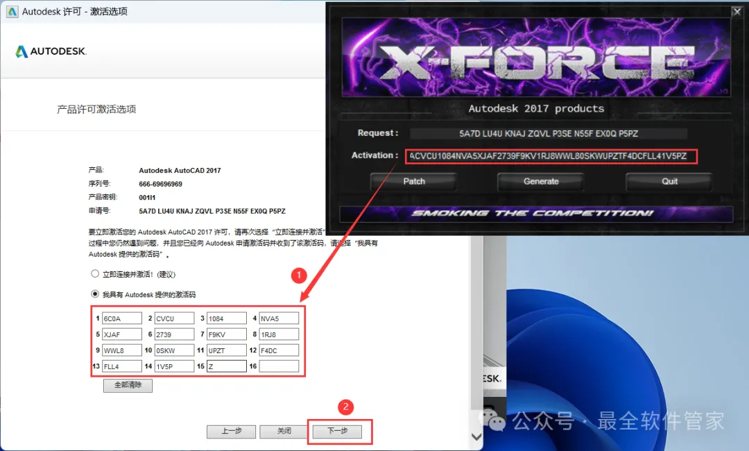 27、将程序的【Activation】填入到软件的【激活码】内,再点击【下一步】