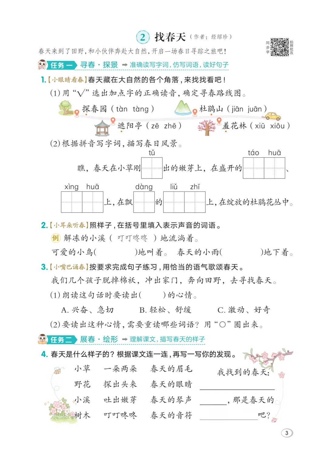 26春部编版语文二年级下册《同步课本一课一练》课课练附答案| PDF高清彩色可打印