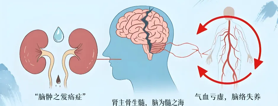 很多人抑郁之后都有一种脑子生锈的感觉,要做的事转头就忘,耳鸣、掉头发、腰酸腿软。这不是你老了,也不是变笨了,而是肝郁把肾精给耗光了。