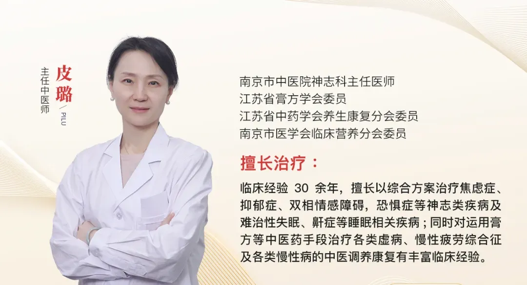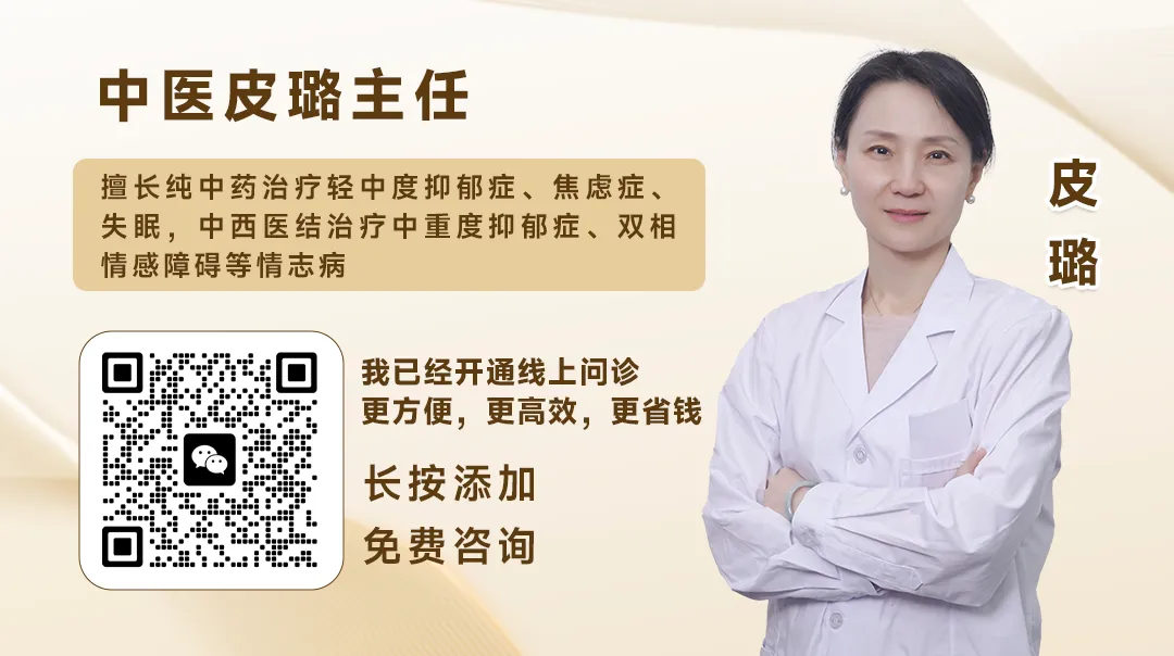 我是中医皮璐,公立三甲医院神志科主任医师,临床经验30多年,擅长中西医结合治疗焦虑症、抑郁症、失眠、双相情感障碍等神志类疾病。