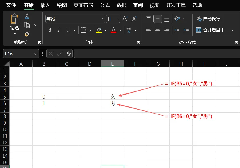 这行代码的意思是:如果b5=0,那么就显示为女,否则显示为男。