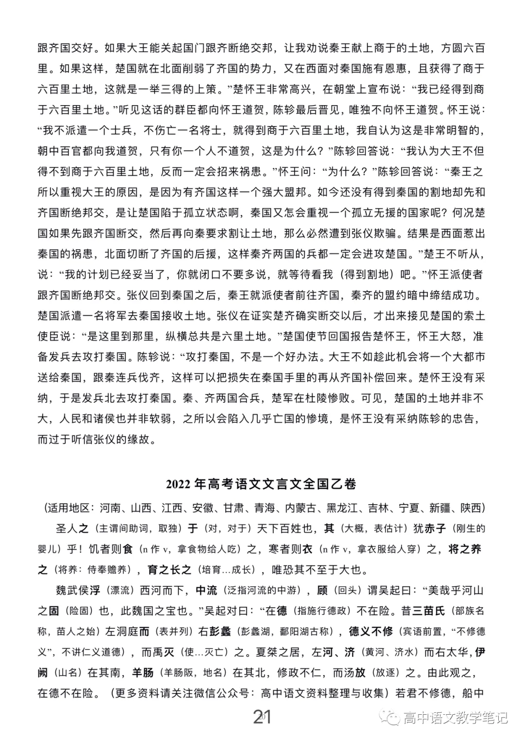 2018-2023年近五年高考文言文真题挖空翻译,可编辑文档共48页,领取方式见文末微信。~