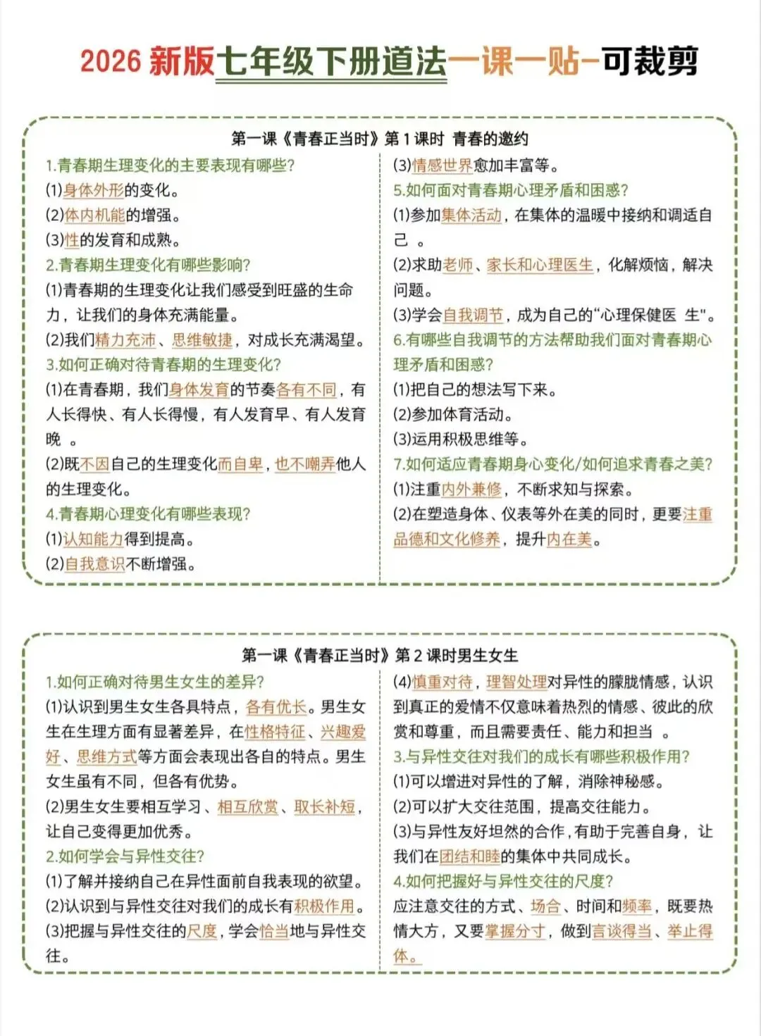 七年级下道法一课一贴(可剪裁)/电子版可打印