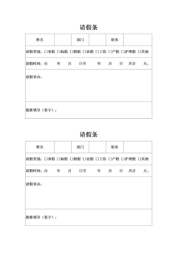 10套请假条模板合集(电子版可编辑可打印)【免费保存下载】 本文分享:10套请假条模板合集 下载后办公软件可直接编辑修改打印 网盘打包下载链接👇 https://pan.quark.cn/s/433a9c597e5b #电子版的请假条模板 #请假条免费模板 以下是部分预览图下载 以上仅为部分预览图 点击阅读原文,可直接下载