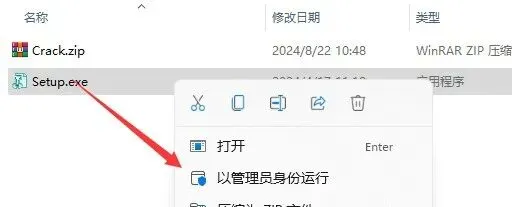 2.打开解压后的文件夹,鼠标右击【Setup】选择【以管理员身份运行】。