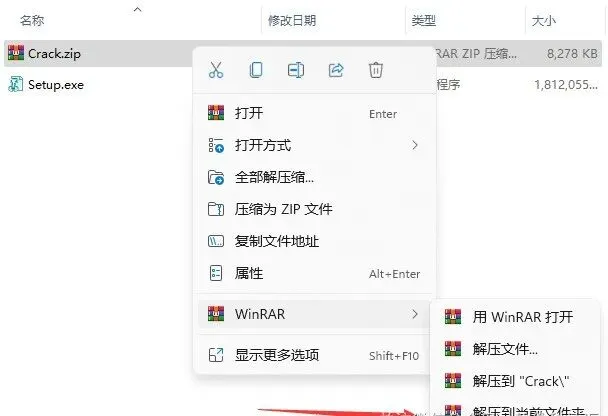 温馨提示:解压【Crack】前,先关闭所有杀毒软件,否则可能会被杀毒软件误杀无法运行。若已经没有该文件,需重新解压安装包。