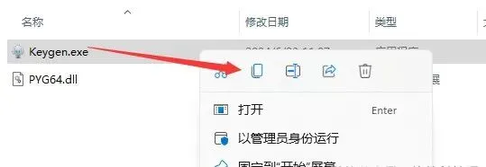 12.鼠标右击粘贴后的【Keygen】选择【以管理员身份运行】。