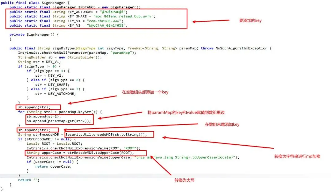动态加盐 (Salt): 根据传入的 signType(整数),选择不同的 Key。 -